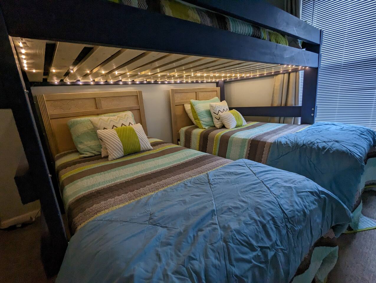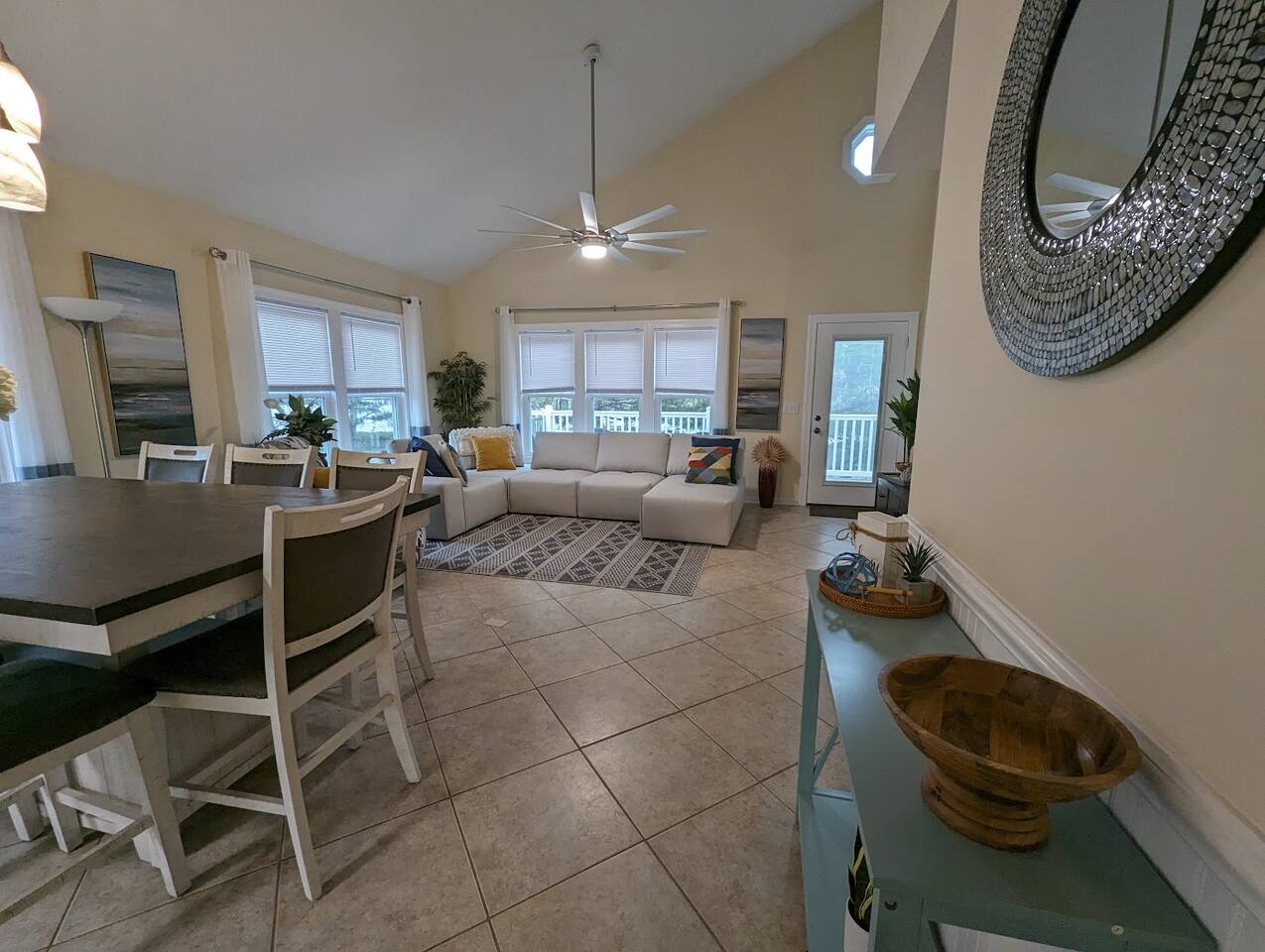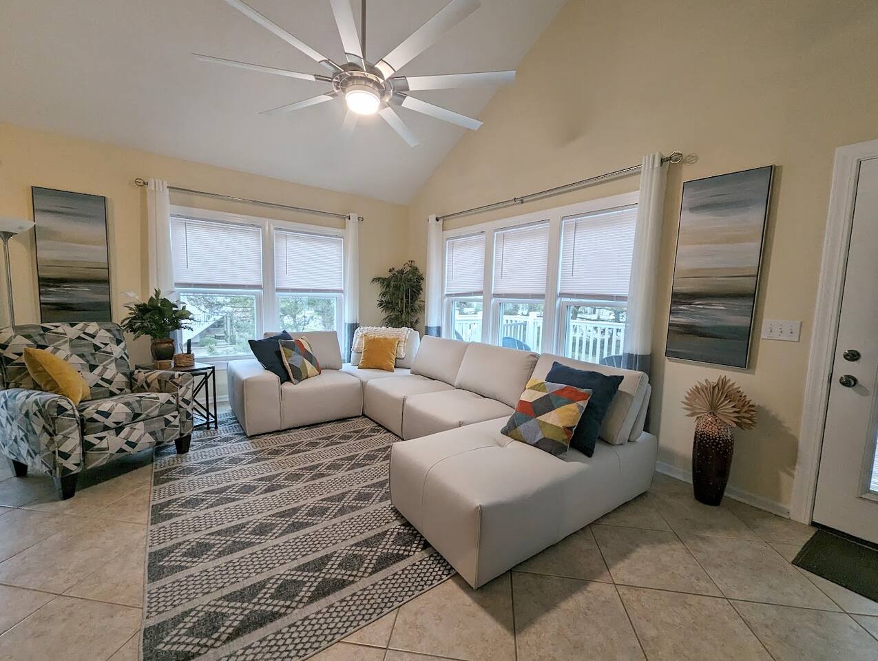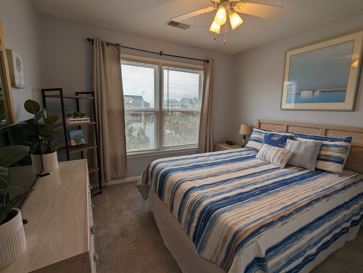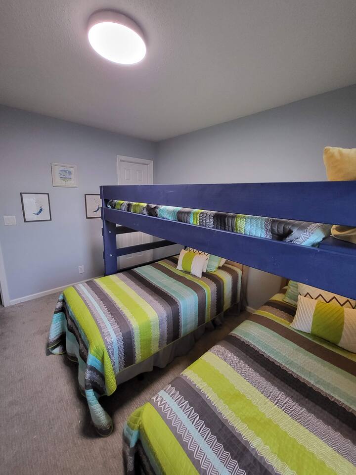 Welcome to your oasis of comfort and tranquility! Our home provides ample space for you to relax and unwind, both indoors and out. One of the many highlights of our property is the serene outdoor area located underneath the house. Complete with cozy hammocks, comfortable seating, a grill, and an outdoor table, this space is the perfect spot to spend quality time with loved ones in the fresh air. The area stays pleasantly cool, making it a fantastic place to kick back and soak up the beautiful surroundings. Additionally, there is an outdoor shower with a changing room, as well as a shed stocked with beach chairs, an umbrella, and even games such as cornhole! As you enter our fully-stocked kitchen on the first floor, you'll find all the supplies you need to prepare meals during your stay. The dining table seats 8, with an additional 3 seats at the counter. The large living area features a 65-inch TV with access to all your favorite streaming apps, as well as high-speed internet. We also have a dedicated work area to make your stay even more comfortable if you find you need to check some emails. Downstairs, there are two bedrooms, one with a king bed and one with a queen bed. These rooms are connected by a newly updated Jack and Jill bathroom with a beautiful tiled shower. Additionally, there is a half bath on the first floor for convenience (no one will have to enter someone's bedroom to use the bathroom). The living room opens up to the porch, where you can enjoy the beautiful ocean breeze and comfortable seating. We have a wooden baby gate on the back porch to ensure your little ones stay safe. We also have a full-size washer and dryer in the unit for your use. Upstairs, you will find two more bedrooms connected by an updated Jack and Jill bathroom with a tub. One bedroom has a queen bed and the other has 2 twin beds and a full-size bunk bed. The queen room offers a limited ocean view. Three of our bedrooms have ceiling fans (excluding the bunk room), and we also provide a box fan for guests who prefer extra air or white noise. We aim to provide a variety of beach chairs, with a goal of having at least 8 fully functioning chairs. If you find any chairs that are unusable or in need of replacement, please reach out to us, and we will cover the cost of new chairs for your use during your stay. The same holds true for our umbrella and wagon, both of which are available for your convenience. We hope you enjoy your stay at our home and make wonderful memories with your loved ones!