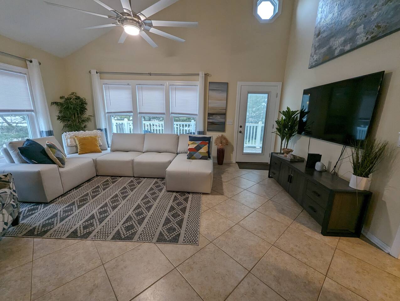 *********SECOND ROW, 60 steps to beach access!******* *Updated, modern, and clean! * TWO POOLS and Community DOCK * LINENS INCLUDED * 4 BEDROOMS (KING BED, 2 Queens, 2 Twins, 1 Full Bunkbed) * VAULTED CEILINGS with LOTS of SPACE to move around * HALL BATH - so you don't have to go through a bedroom! * EASILY GO BACK & FORTH to BEACH and HOUSE * STOCKED KITCHEN * BEACH CHAIRS * BLACKSTONE GRILL